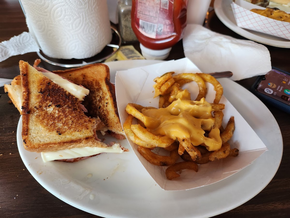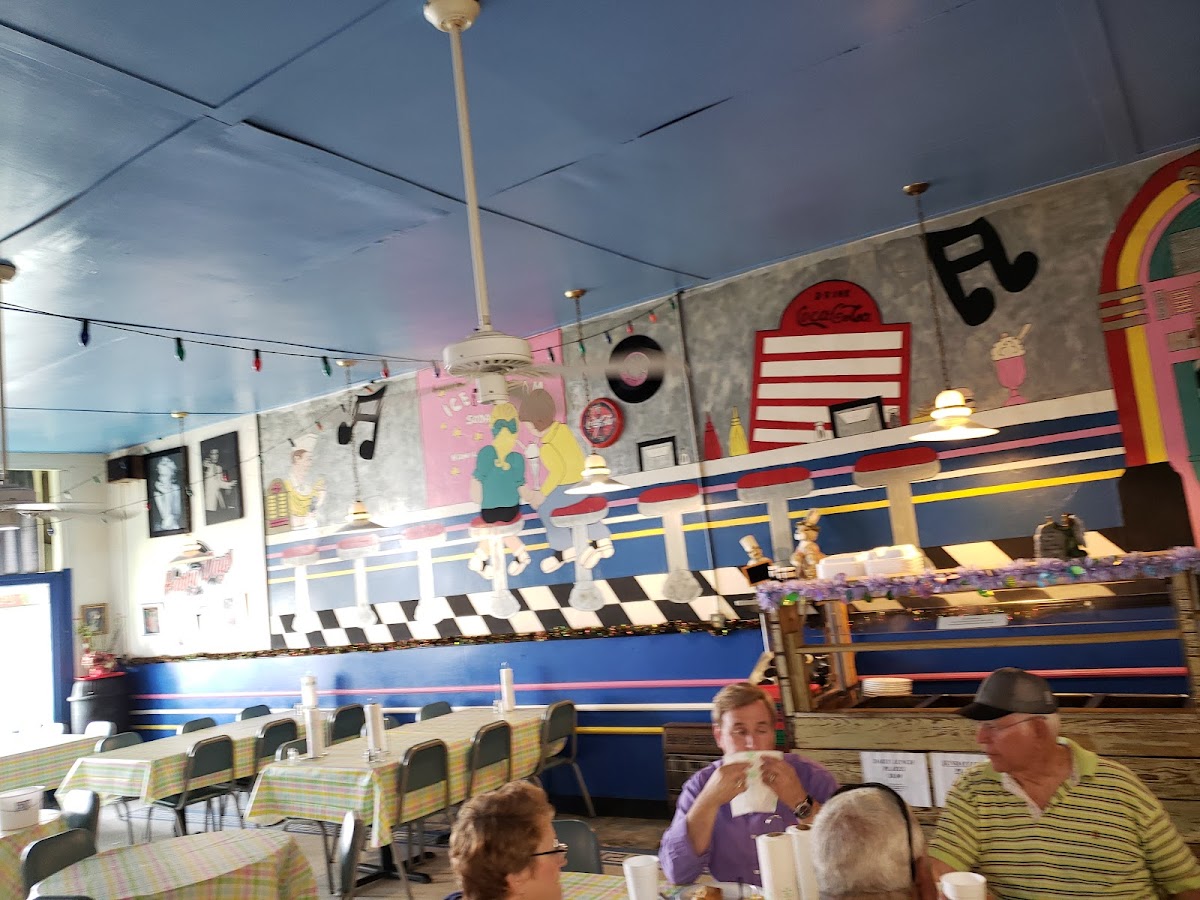 This is a quaint little cafe style restaurant located in the downtown area. The atmosphere is cozy with pictures of Elvis and James Dean decorating the interior. Staff was very pleasant and service was reasonable fast. Burgers were old fashioned and delicious! You can view on old railroad car across the street as you dine. We loved it.
